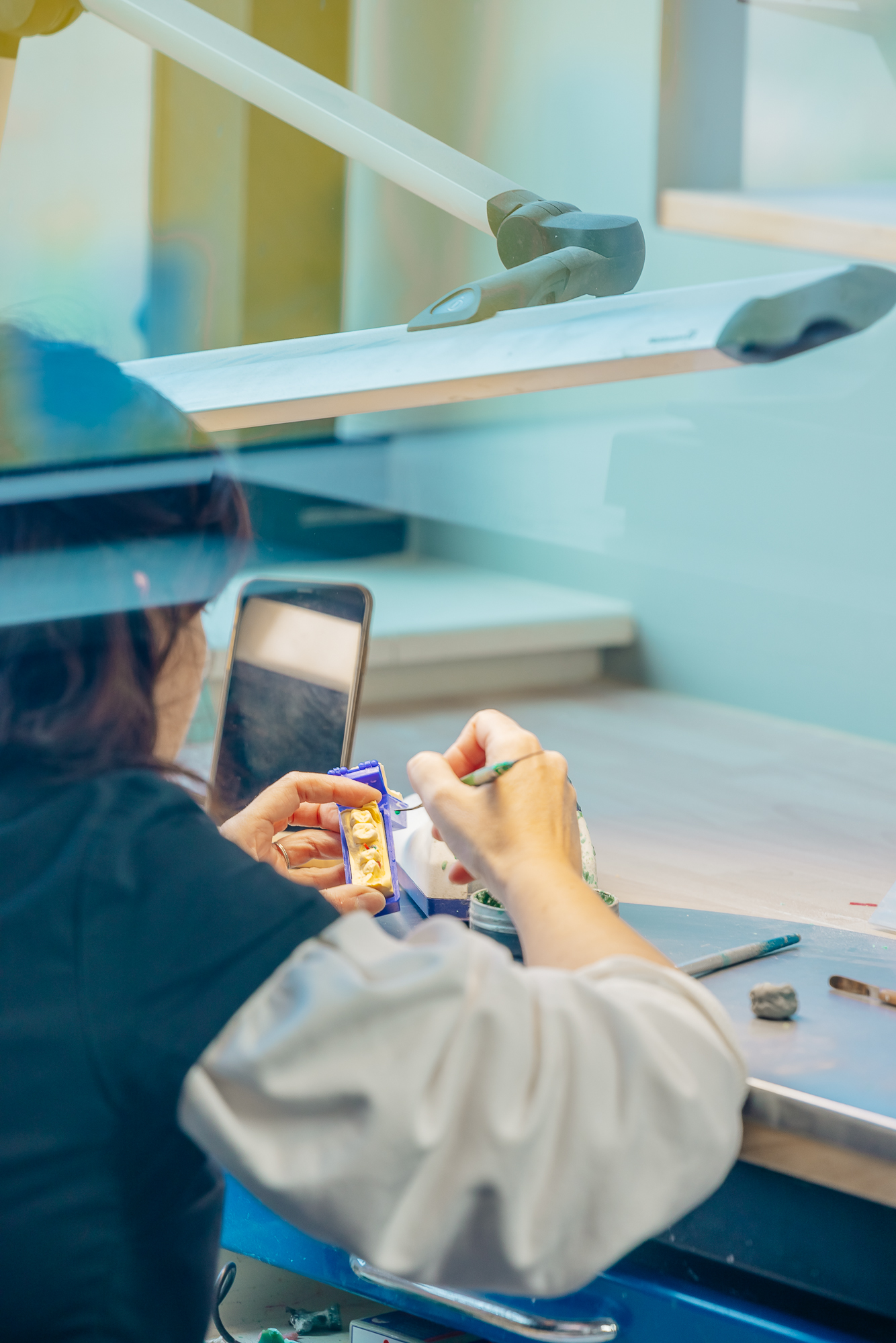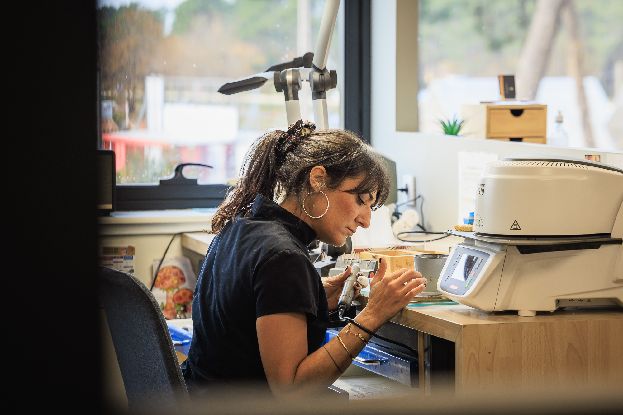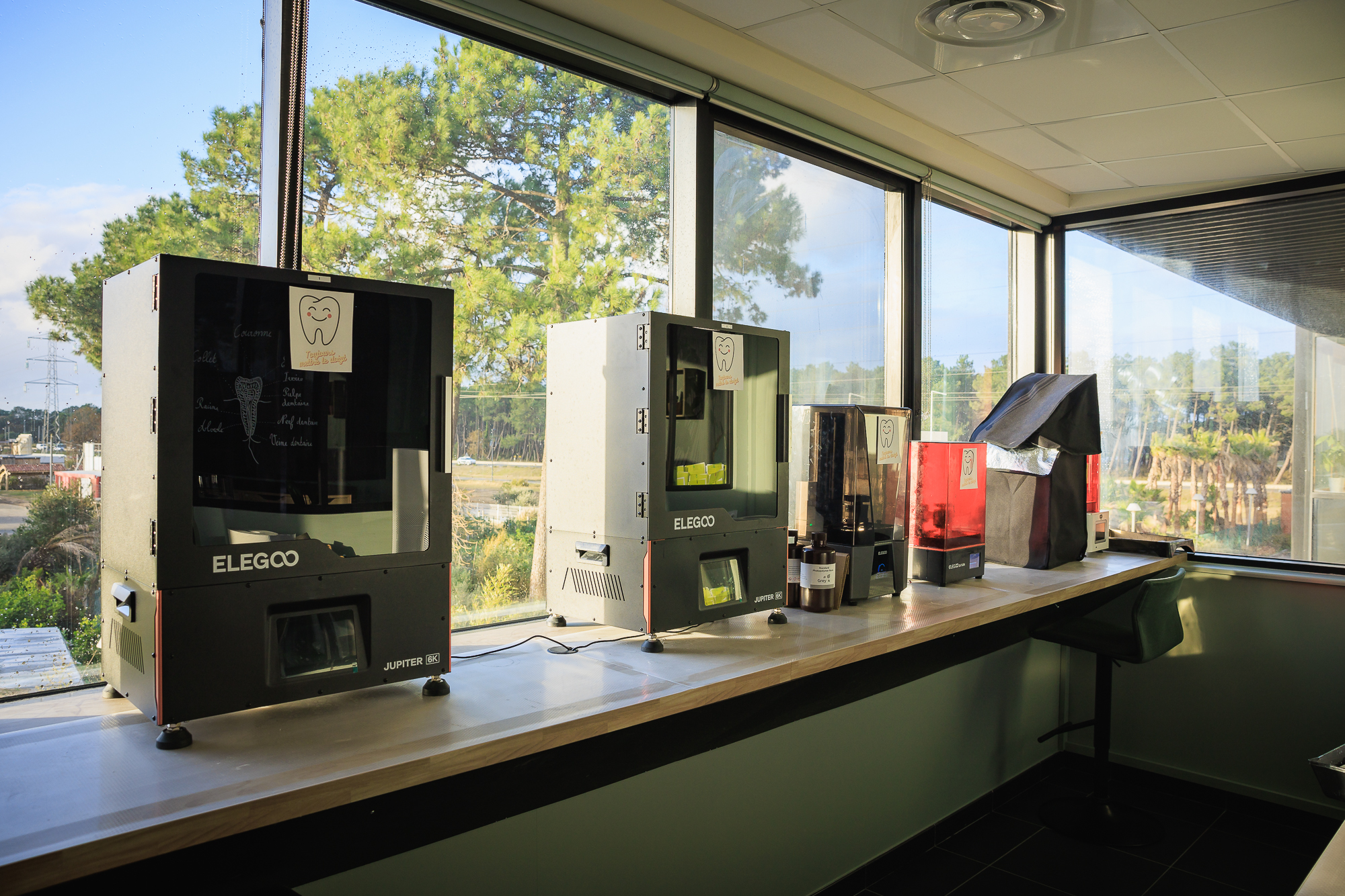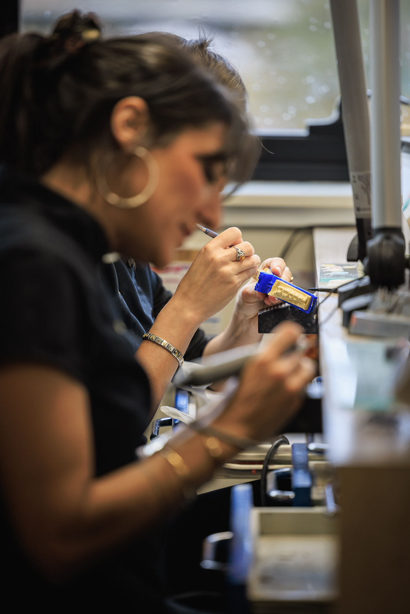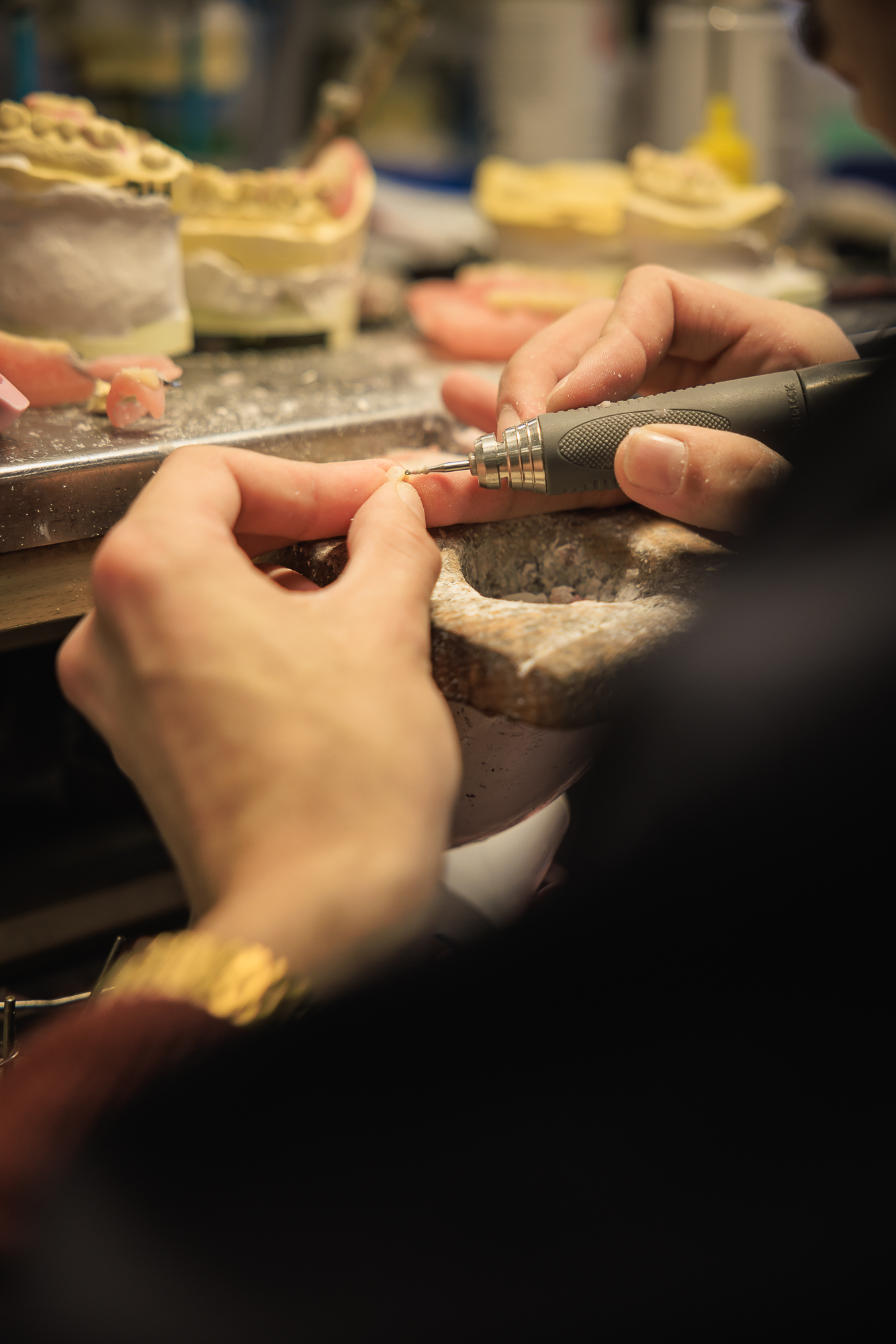 Nous disposons d'une chaîne complète et autonome de fabrication pour tous types de prothèses (adjointe, conjointe et implantologie), aussi bien en numérique qu'en méthode traditionnelle.